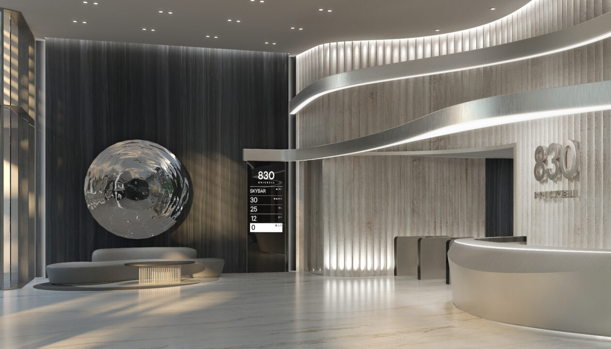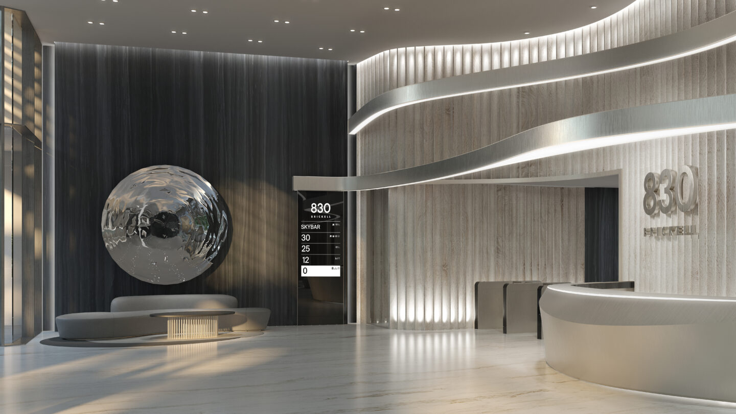 Designed by Adrian Smith + Gordon Gill, with interiors by Italian firm Iosa Ghini Associati, the 724-foot tower holds LEED Gold certification and is Wired Certified, with energy-efficient features such as full-height insulated glazing, low-E tinted glazing, and a hurricane-impact glazing system.