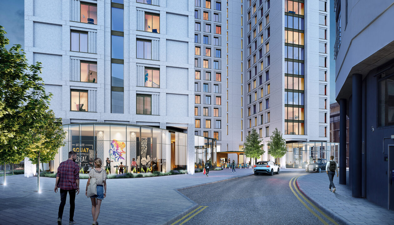 The development includes c.15,000 sq ft of high-quality amenity space, ranging from study areas and group dining rooms to a cinema, fitness suite, and games room. The scheme is targeting BREEAM Excellent and WiredScore Platinum ratings, with completion planned for the 2028/29 academic year.