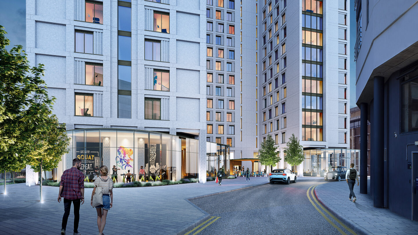 St James House is a 28-storey purpose-built student accommodation (PBSA) scheme in central Bristol, being delivered by Cain in partnership with Olympian Homes. Upon completion it will be the tallest building in the city and provide 574 beds across two towers, with one focused on student accommodation and the other offering larger co-living units.